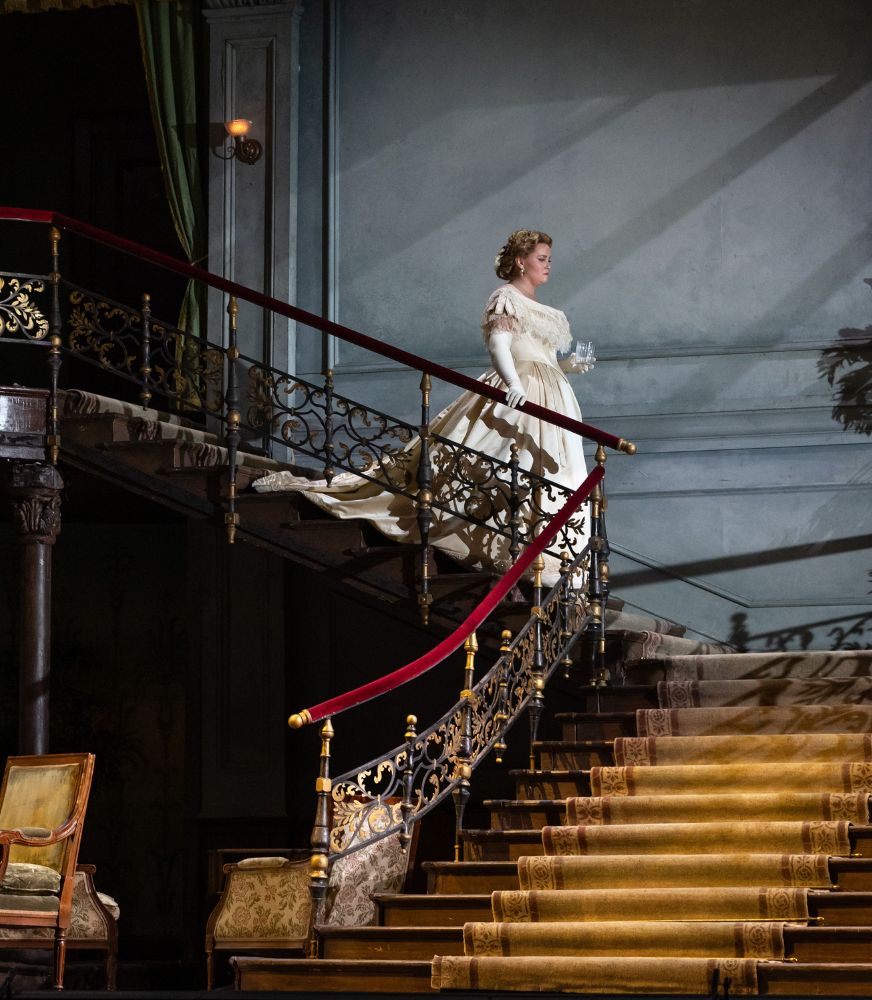 Arabella enters the hotel lobby, dreamily thinking about her future life. Matteo, who has just spent some time in a dark room with someone he thought was Arabella, is amazed to find her there and can’t make sense of her cool cordiality. Mandryka arrives with the Waldners. Recognizing Matteo as the person who was given the key, he is convinced of Arabella’s betrayal despite her protestations of innocence. His behavior leads Waldner to demand satisfaction. Suddenly Zdenka comes running down the stairs in a nightgown. Overcome with shame, she confesses she gave herself to Matteo to avert a worse disaster. While her shocked parents forgive her, Matteo happily realizes that something didn’t add up from the beginning and that he is in love with Zdenka. Mandryka, though mortally ashamed, quickly takes charge of the situation and asks Waldner for Zdenka’s hand on Matteo’s behalf. As the others retire to their quarters, Arabella asks Mandryka to have his servant bring a glass of water to her room. Left alone and unable to forgive himself for his lack of trust in Arabella, Mandryka despondently wonders how she feels about him now that she left without even saying goodnight. As he is about to leave, Arabella appears at the top of the stairs, water glass in hand. She forgives Mandryka, and they renew their promise of love.