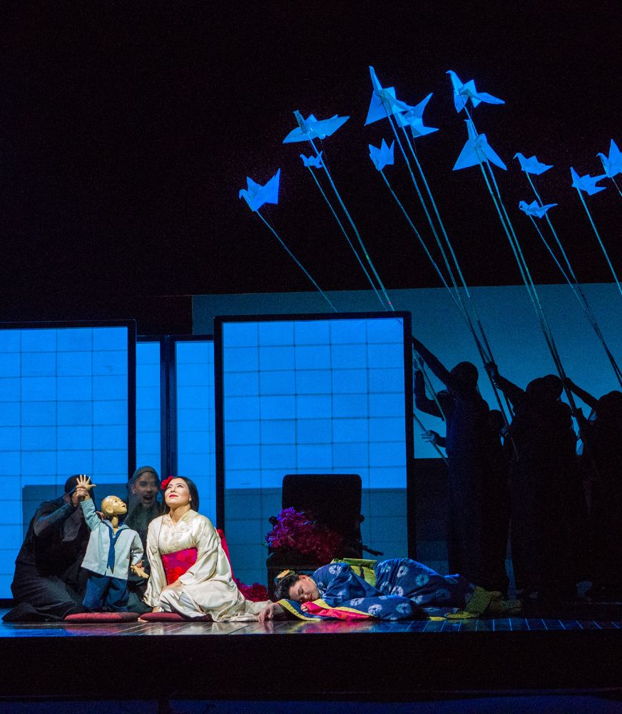 Dawn breaks, and Suzuki insists that Butterfly get some sleep. Butterfly carries the child into the house. Sharpless appears with Pinkerton and Kate, Pinkerton’s new wife. Suzuki realizes who the American woman is and agrees to help break the news to Butterfly. Pinkerton is overcome with guilt and runs from the scene, pausing to remember his days in the little house. Cio-Cio-San rushes in hoping to find Pinkerton, but sees Kate instead. Grasping the situation, she agrees to give up her son but insists Pinkerton return for him. Dismissing everyone, Butterfly takes out the dagger with which her father committed suicide, choosing to die with honor rather than live in shame. She is interrupted momentarily when the child comes in, but Butterfly says goodbye and blindfolds him. She stabs herself as Pinkerton arrives, calling out for her.